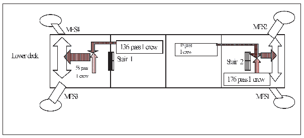 of corridor 2 two groups are formed, each composed by 99 passengers