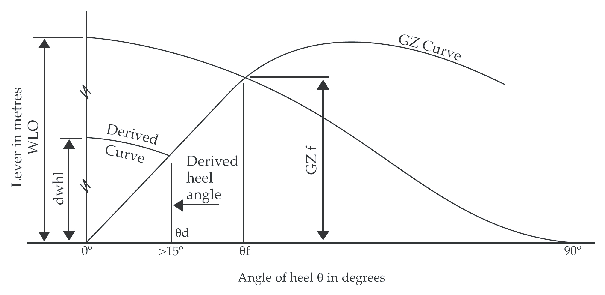 a "derived wind heeling lever" curve with the GZ curves referred to