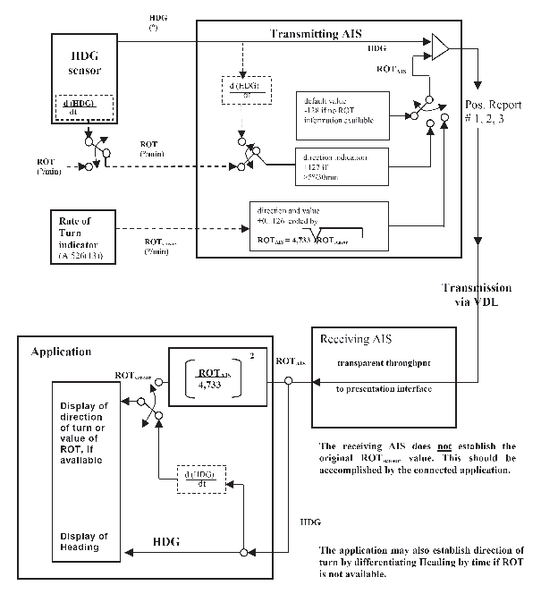 as 2.5° in 15 s by configuration); the AIS may also derive ROT