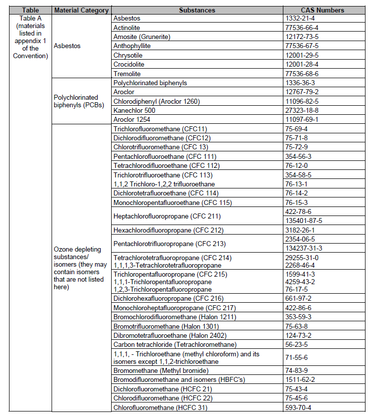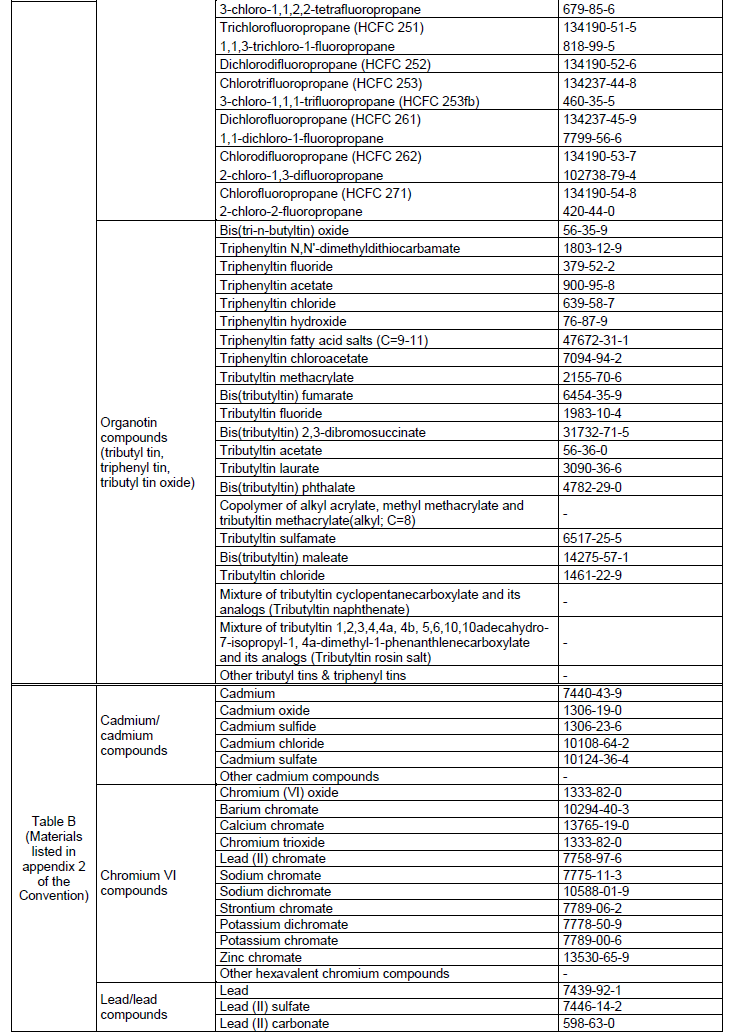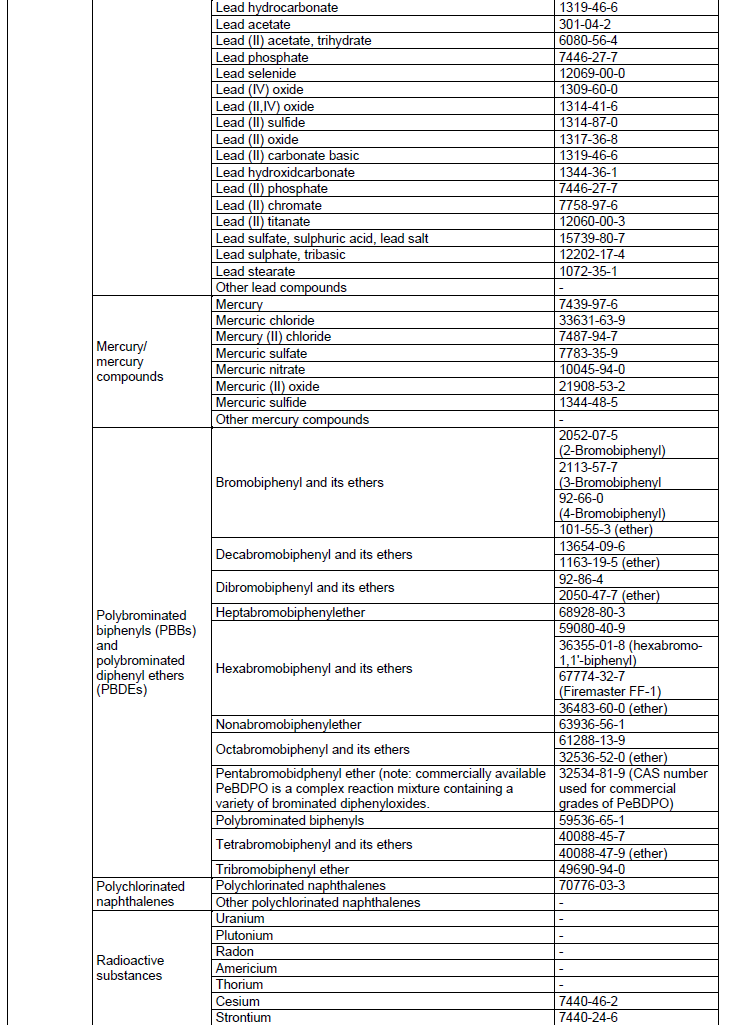This list was developed with reference to Joint Industry Guide No.101. This list is not exhaustive; it represents examples of chemicals with known CAS numbers and may require periodical updating.