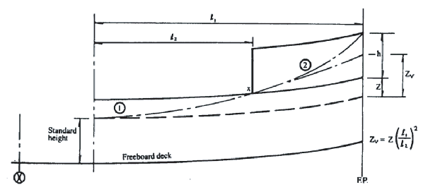 superstructure, sheer credit shall be allowed for such a poop or forecastle,