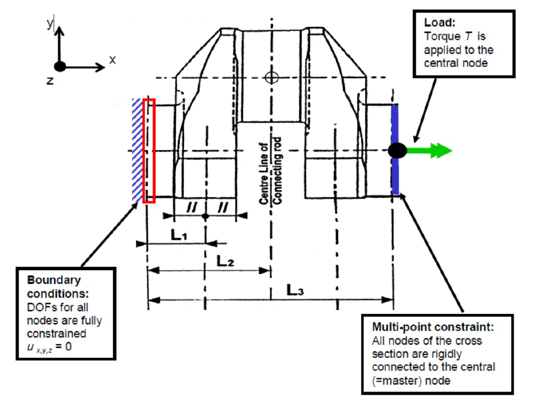 3.3.2 The bending moment is applied to the central node on the crankshaft axis. This node