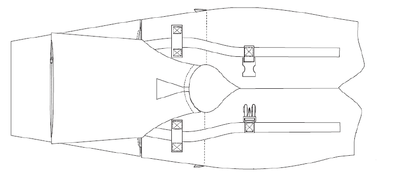 3.2.3.1 Attach one 76 mm black belt-loop webbing (component 3.4) to each shoulder on the