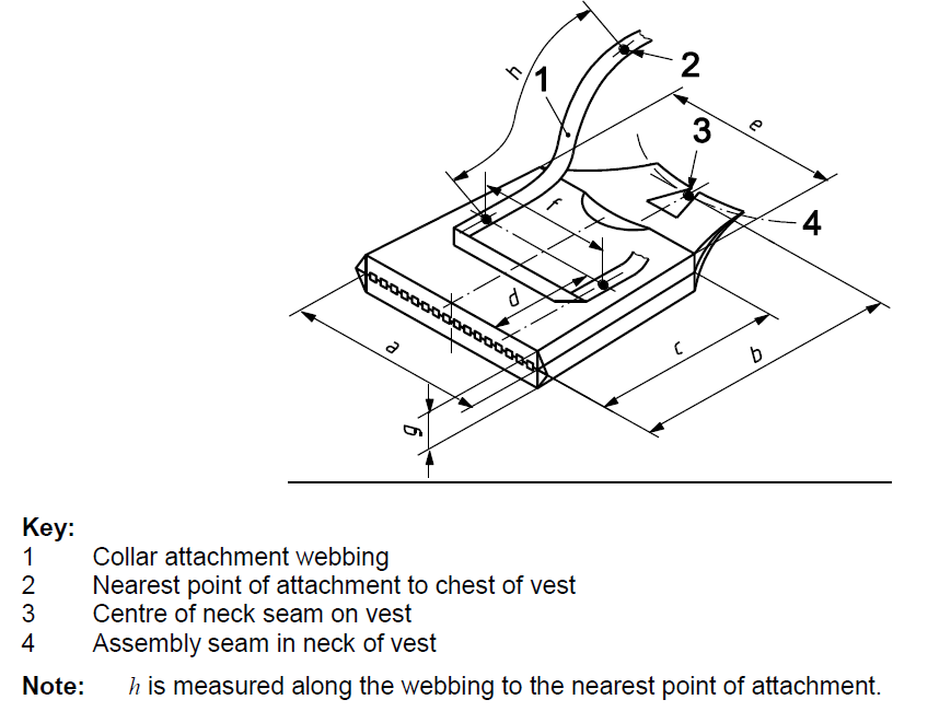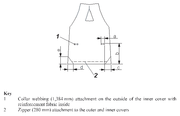 3.2.5.5 Stitch the yellow collar attachment webbing to cover front, between the two