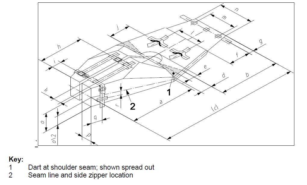 throughout for fabric cutting and stitching assembly. A tolerance of ± 6 mm is also used