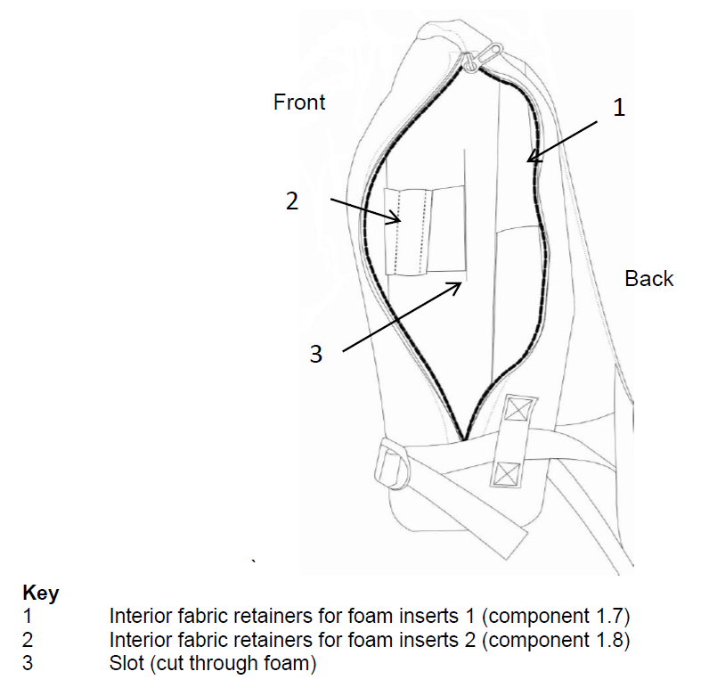 3.2.1.3 Fold the interior fabric retainers for foam inserts 2 (component 1.8) in half