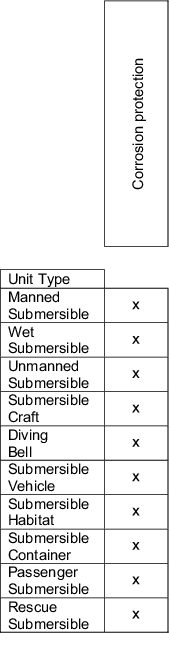Clasifications Register Rules and Regulations - Rules and Regulations for the Construction & Classification of Submersibles & Diving Systems, July 2022 - Exostructure, Stability and Corrosion Protection - Corrosion Protection - Applicable Unit Types