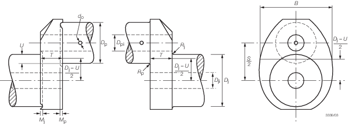 measured from shaft axis, in mm.