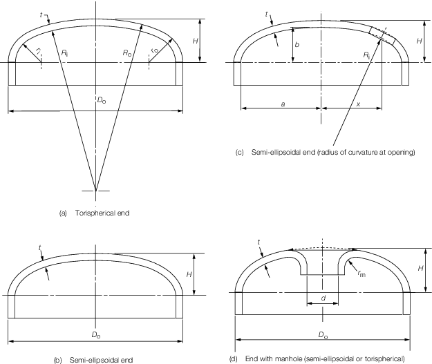 Figure 9.3.2 Typical dished ends(d). The thickness of the