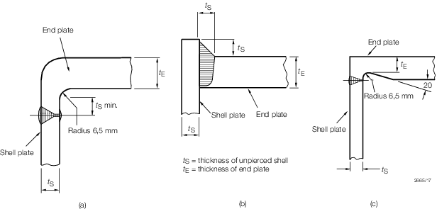 in flat plates are to be compensated in accordance with Figure 9.6.1 Typical methods of attachment of un-stayed circular flat end plates(a) or (b), with the value