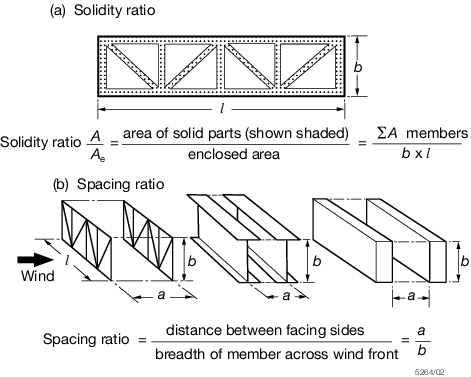 the solidity and spacing ratio as defined in Figure 9.2.2 Solidity ratio and spacing ratio.