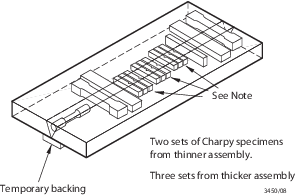 to the weld metal in the uppermost and lowest Charpy specimens in