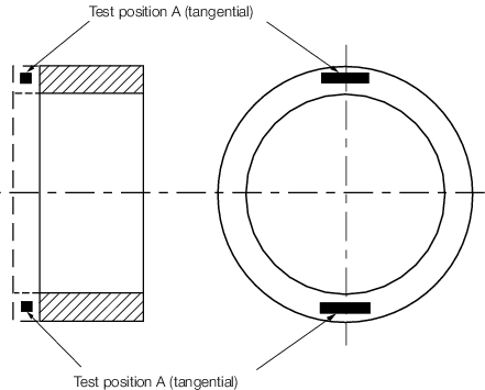 tangential direction (from one of the test positions A or B in Figure 5.5.2 Test position A or B).