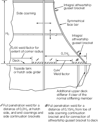 Extended coaming plates and hatch side girders are to be flanged or fitted with face