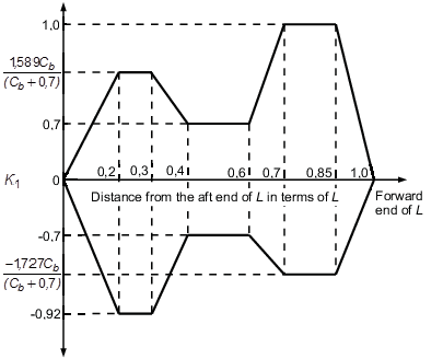 loading conditions given in Pt 3, Ch 4, 5.3 Design still water bending moments 5.3.3 and is to satisfy the following relationship: