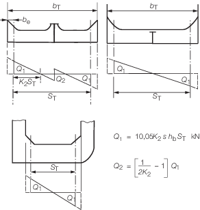 transverse webs at the cross ties, in metres |