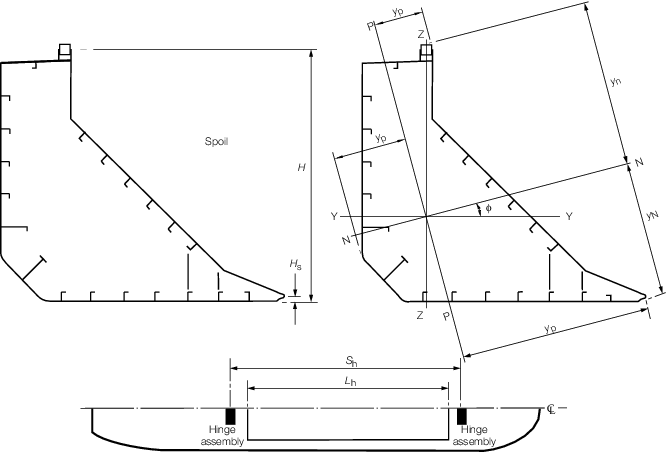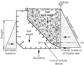of hinges, actuating mechanisms and locking devices. Figure 12.17.2 Split hopper dredger illustrates a typical