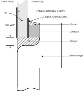 Figure 2.10.1 Gap width between flange and window, bonded from outside of the ship