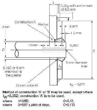 stays are strength welded into the plates as shown in Figure 10.9.2 Typical attachment of firebox, combustion chamber stays and bar stays