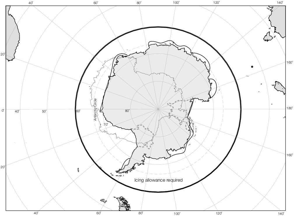 Figure 1.4.2 Ice accretion limits for the Antarctic