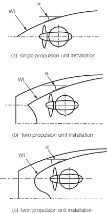 as if the stern centreline were a bow stem. For twin propulsion unit
