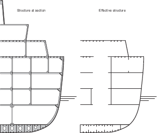 is given in Figure 16.6.1 Effective structure for a typical ship section. The structure