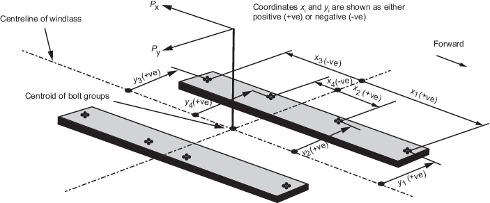 deck are to be calculated. The windlass is supported by N bolt groups, each