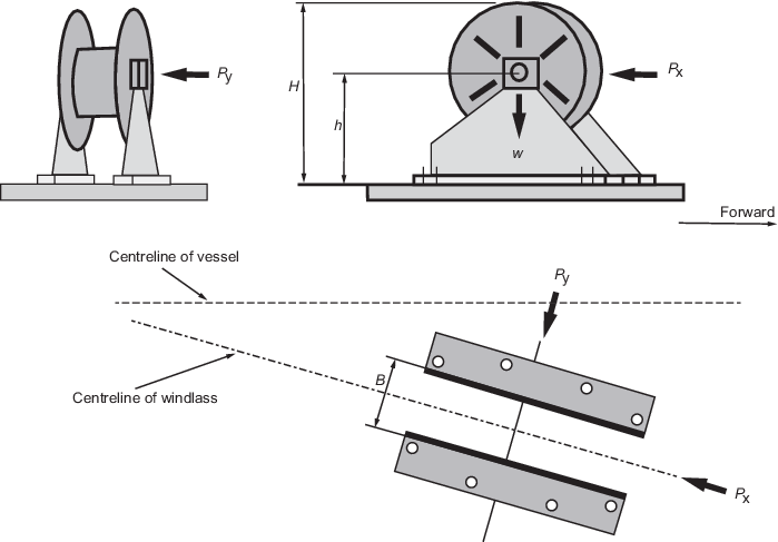 8.14.3 Forces in the bolts, chocks and stoppers securing the windlass to the