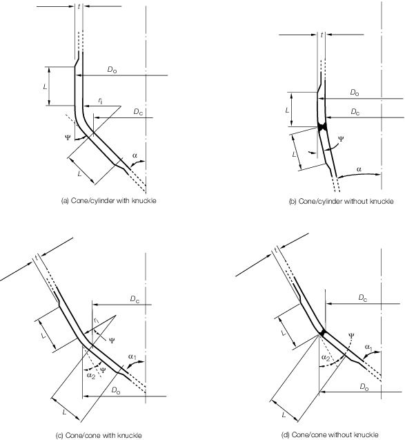 are shown in Figure 1.5.1 Conical ends and conical reducing sections. Alternatively,