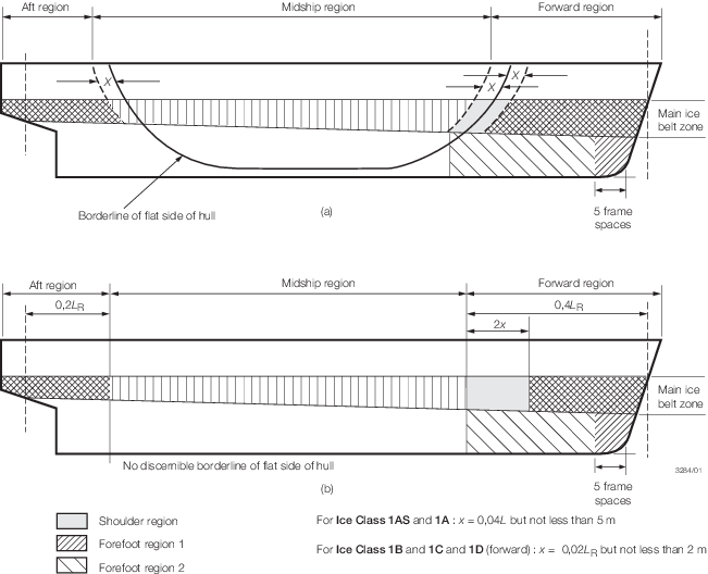 and ice load waterlines, which are defined in Vol 3, Pt 1, Ch 1, 2.2 Definitions . The maximum and minimum Ice Class