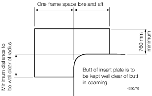 shapes of corner, insert plates of the size and extent shown in Figure 3.8.2 Inserts in way of hatch openingwill, in general, be required.