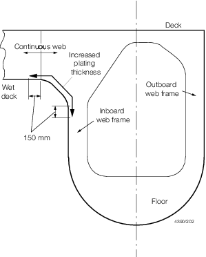 is impracticable to comply with the requirements of Pt 7, Ch 4, 4.6 Bottom outboard transverse web frames 4.6.1, or where it is proposed to terminate