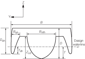 5.2.19 Displacement, Δsh, is the total displacement of one side hull in tonnes.