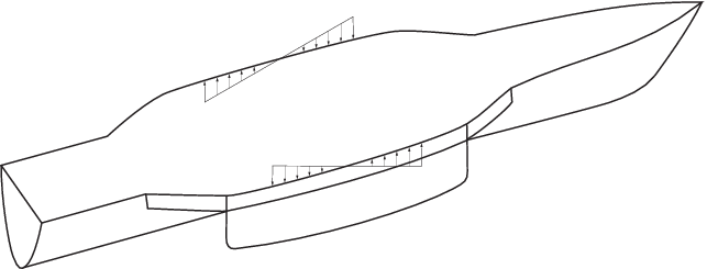 (sag) or towards (hog) the centre hull, resulting in stresses in the